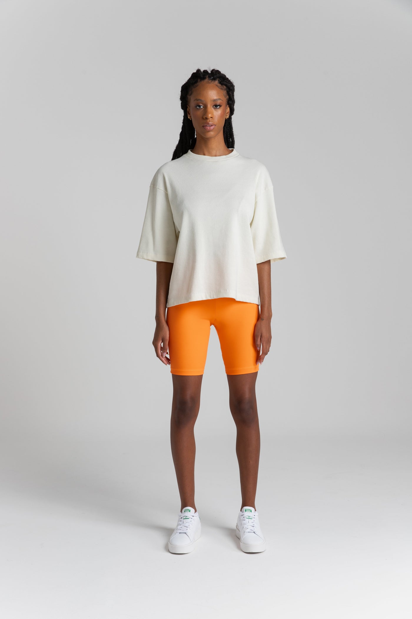 O tecido é encorpado, proporciona um caimento perfeito, enquanto a modelagem oversized oferece um toque contemporâneo. Os ombros deslocados e as mangas amplas adicionam um charme adicional, tornando esta camiseta uma escolha versátil para diversas ocasiões.