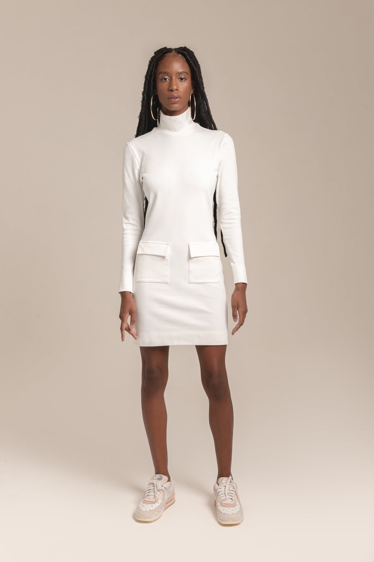 Explore o Vestido Mahalia, uma peça concebida para acompanhar a intensidade da vida urbana. Em tecido canelado 100% algodão, este vestido apresenta duas opções de cores - o rosa vibrante e o branco clássico. Com gola alta e mangas longas, é a escolha ideal para os dias de clima mais amenos, oferecendo estilo sem comprometer o conforto.